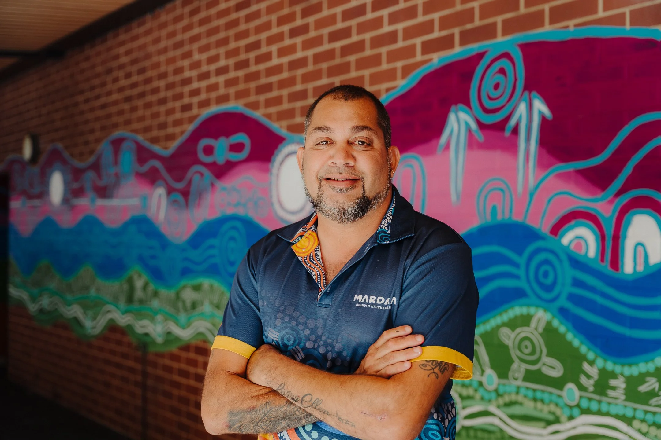 Kevin is a Whadjuk-Yuet Nyungar and Widi Badimia Yamatji artist and CEO of Mardaa. He shares stories through Indigenous art, connecting culture, Aboriginal history and Country in each design.