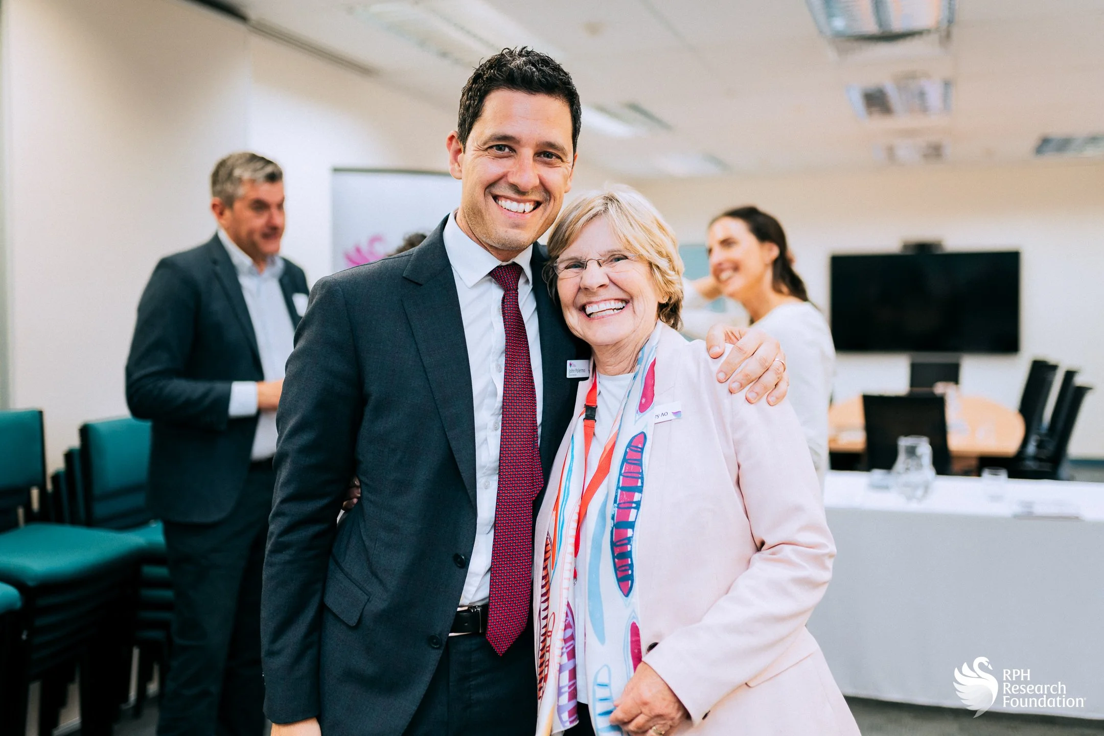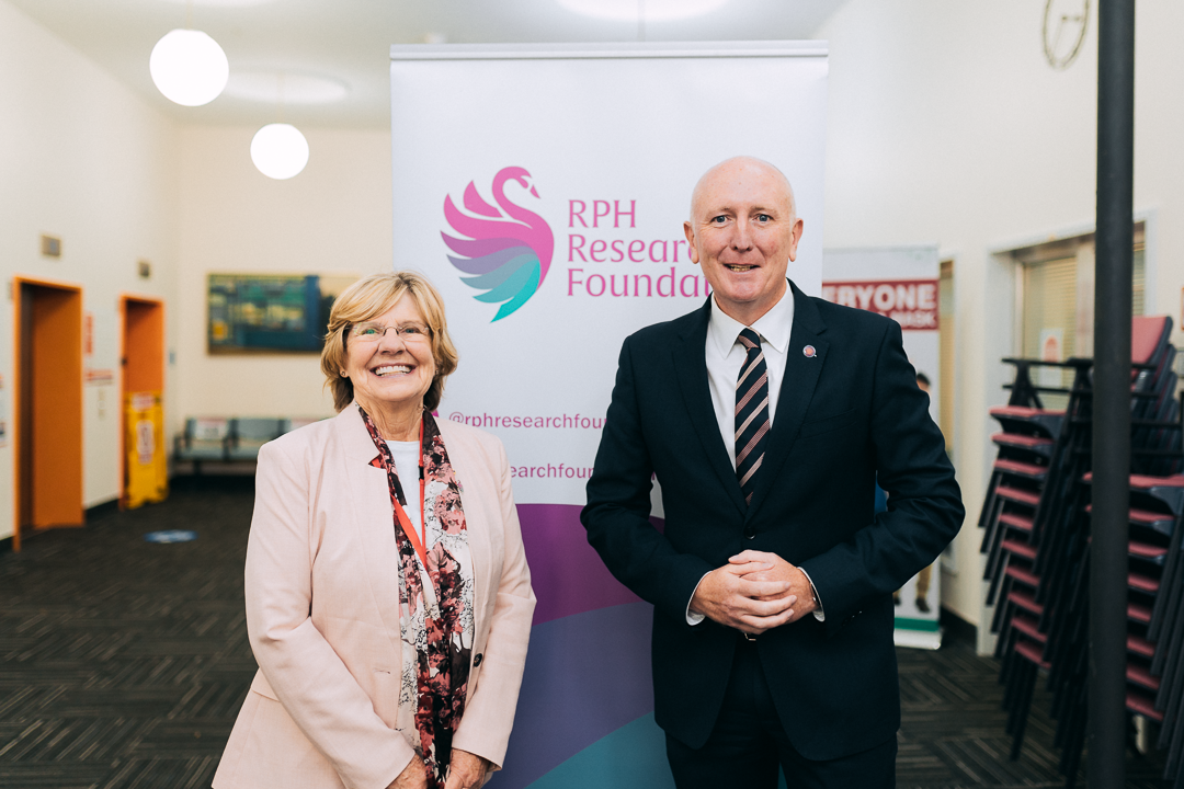 Image: Professor Lyn Beazley AO with The Honourable Stephen Dawson MLC (Minister for Emergency Services; Innovation and the Digital Economy; Medical Research; Volunteering) at the RPH Research Foundation's Research Symposium and Awards Day 2022.